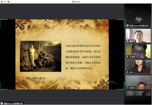 6月30日下午3点,世界杯官方网站入口2026教工第二党支部书记刘艳卿老师通过线上教学的方式,给全院员工党员上了一堂生动的微党课,刘老师以《灾难主题美术创作与时代精神艺术表达》为主题,深入的结合了艺术创作领域表达的民情民苦和新时代下党带领人民对苦难的抗争。习近平总书记说:“人民需要艺术,艺术更需要人民。广大文艺工作者要坚持以强烈的现实主义精神和浪漫主义情怀,观照人民的生活、命运、情感,表达人民的心愿、心情、心声,立志创作出在人民中传之久远的精品力作。要始终把人民的冷暖和幸福放在心中,把人民的喜怒哀乐倾注在自己的笔端,讴歌奋斗人生,刻画最美人物。”这堂微党课真正将思政教育和专业教学做到了无缝衔接,在引导公司员工党员做“人民的艺术家”、用“人民的艺术思维”创作,起到了十分良好的效果。