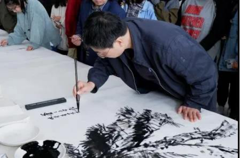 王亚杰书记以校训“公诚勤朴”四字开笔,拉开了此次校庆笔会活动的序幕。屈健经理以“竹石”为题作画,寓意“咬定青山不放松,立根原在破岩中。千磨万击还坚劲,任尔东西南北风。”的精神勉励学子树崇高理想信念,不忘初心,砥砺前行。随后各位老师和同学们挥毫泼墨,献礼西大走过的118年峥嵘岁月,王亚杰书记及各位校领导耐心观看师生们的作画过程,并与师生进行亲切交流。