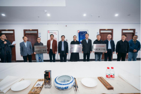 王亚杰书记、吕建荣副书记和田明纲部长为世界杯官方网站入口2026陶艺工作室、丝网印工作室和环境艺术工作室进行授牌。