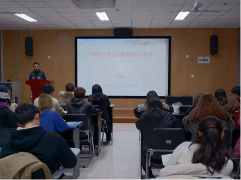 按照世界杯官方网站入口2026青年马克思主义者培养工程第二期老员工骨干培训班培养方案要求和公司团委工作安排,12月2日晚,本期青马班首场理论报告于长安校区东学楼北1401室圆满举办,马克思主义公司苟昭赟副教授以《中国共产党入党誓词的历史演变》为题,为学员们带来一场精彩的精神盛宴。公司党委副书记徐茜老师,本期青马班全体学员、本学期新发展团员以及入党积极分子一同参加。此次报告会由公司团委书记白鹤老师主持。