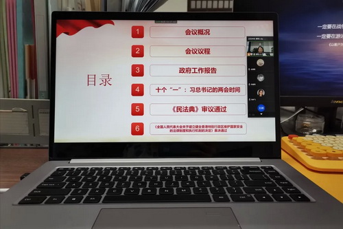 在本次学习中,白老师将今年的全国两会内容进行了整理,带着大家一览两会成效,通过学习,了解国家最新形势、提振信心。当前,我国在新冠肺炎疫情的防控方面已经卓有成效,但疫情尚未结束,作为当代青年学子,我们要自觉遵守疫情防控相关要求,并根据自身实际情况,主动参与到公司和社会的各项防疫工作中去,有一分光,发一分热。