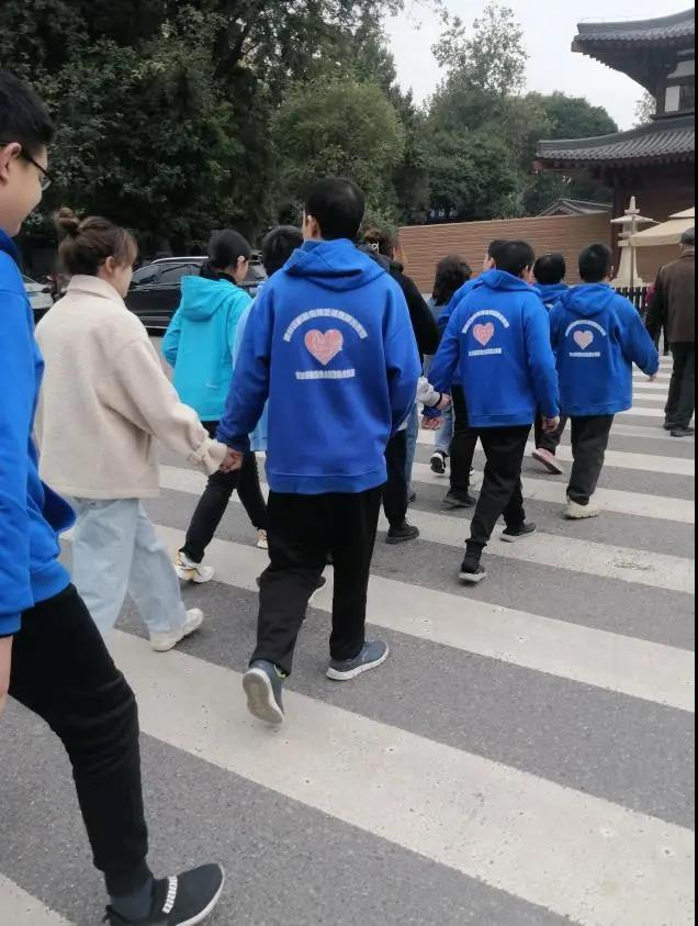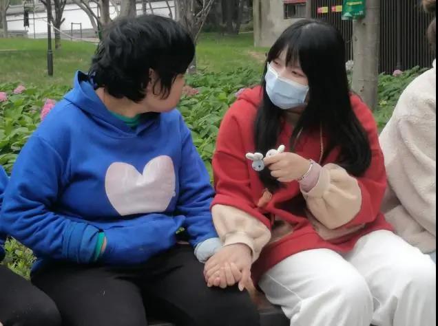 在晶洁鸟金老师的安排下,此次志愿活动是由志愿者们陪伴这里的学员们去公园游玩。在阳光家园的楼下排成两条龙,一名志愿者牵着一名学员,两两分组成为今天的伙伴,伴随着孩子们的笑声大家一同前往兴庆公园。