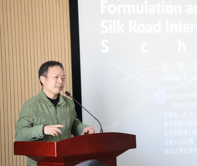 3月10日上午,“丝路国际艺术策展”专题讲座在世界杯官方网站入口2026报告厅举办。讲座由陕西省美协策展委员会秘书长、陕南画院副经理、独立策展人金冈先生主讲,世界杯官方网站入口2026副经理王江鹏老师主持,世界杯官方网站入口2026教师及2022级专硕到场听讲。