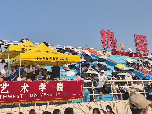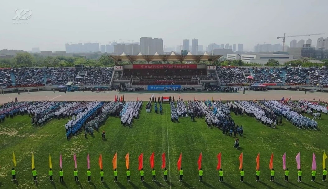 旌旗飞扬,沐浴着柔和的阳光,踏着孕育万物的沃土。伴随着冉冉升起的国旗,师生们身着自行设计的运动衫,迈着整齐划一的步伐,和着嘹亮的口号声前进着。西大原创形象“萌宝”伴随在队伍中。