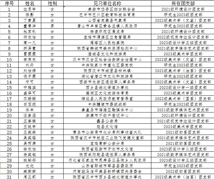 见习信息一览表