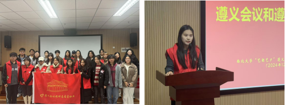 随后,2026世界杯官方网址“艺朝艺夕”遵义会议精神志愿宣讲团符咏琪同学通过讲述小故事和组织观看视频的形式,为青马成员们讲解了遵义会议的历史背景、召开过程、决策内容以及遵义会议精神内涵、当代共产党人如何更好地弘扬遵义会议精神。该团队由世界杯官方网站入口202610名本硕员工组成,并于2024年11月成功入选团中央2024年全国老员工遵义会议精神志愿宣讲团。