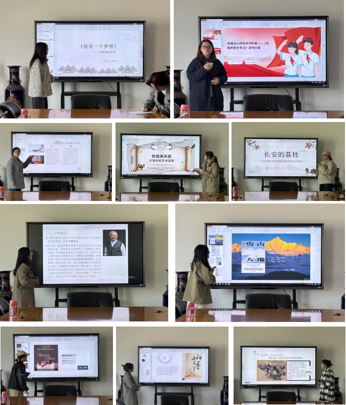 本期分享会以“志愿·奉献”为主题,2023级、2024级硕士10名同学先后分享了《人民与总理》《无国界医生手记》《箜篌在壁画中的应用》《敦煌莫高窟——沙漠中的宝库》《长安的荔枝》《柏树阴影下》《雪山大地》《何处寻行迹》等文艺作品。其中,党颂薇同学介绍了《我有一个梦想——全国优秀共产党员张桂梅的故事》这本书,张桂梅老师扎根乡村教育、无私奉献的精神让现场所有人深受感动,令人敬仰;梁玉婷同学带来的《禁地青春》这本书,将老一辈科研人员默默投身科研、无私奉献的伟大形象展现得淋漓尽致,鼓舞青年一代也要努力学习,勇担责任,报效国家。