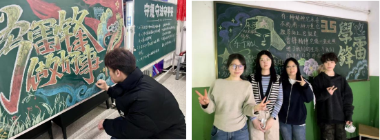 2025年3月中上旬,公司组织多名志愿者协助楼管阿姨,在7、16、18、19宿舍楼绘制“学雷锋”主题黑板报,做好一站式社区楼宇宣传工作,建设德育阵地,打通思政育人最后100米。志愿者们纷纷表示,小画笔传播正能量,通过参与黑板报制作,更加深入地了解了雷锋同志的先进事迹和崇高精神。
