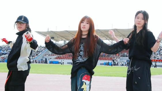 看台上的公司学子们用整齐划一的口号为运动员和啦啦操加油助威,掌声、欢呼声、加油声交织在一起,回荡在整个操场。