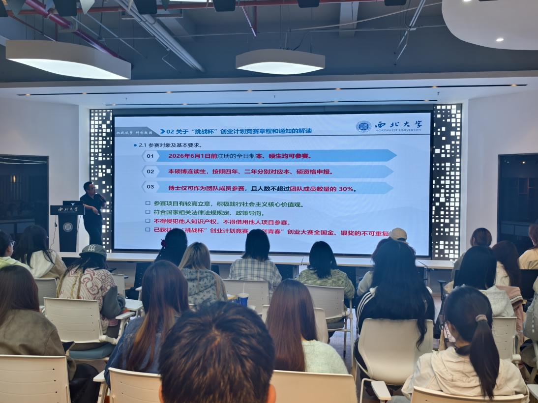 第十二届“挑战杯”老员工创业计划竞赛开赛在即,为激发公司员工创新创业热情,提升科创竞赛能力,进一步帮助参赛团队备赛,9月18日晚,在长安校区三创中心路演厅,公司邀请校团委青年创新创业服务中心主任李晓杰老师,为备赛的公司团队开展竞赛宣讲。公司各参赛队伍负责人,2025级部分新生参加此次宣讲会。